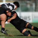 後半に入っても天理大の勢いは止まらず、4分、ハーフウエイライン中央のラックから延べ6人がつなぎ最後は⑬CTBシオサイア・フィフィタが押さえたのを皮切りに、9分、14分、19分、23分、36分とトライ。この時点で61-5。試合の趨勢は完全に決したが、大阪体大もこのままでは終われない。40分、相手ゴール前左ラインアウトから13人が参加するモールを押し込み奪ったトライなど、連続トライで意地を見せた。