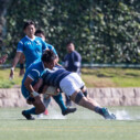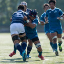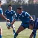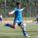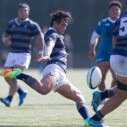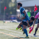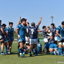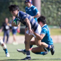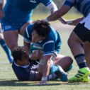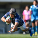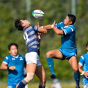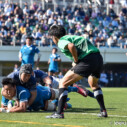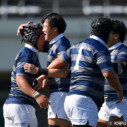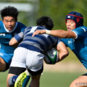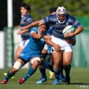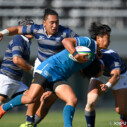 後半に入った直後の1分、同大キックオフのボールを近大がノックオン、そのボールを拾って、右に展開。最後は⑧№8サムエルが中央にトライ、⑮FB安田のゴールも決まって26対7とした。近大には痛恨のミスとなってしまった。前半同様、近大も直後の3分、ゴール前10m左ラインアウトからモールを押し込み②HO竹内嘉章が左隅にトライ、⑩福山のゴールも決まて14対26と迫る。今日の同大はテンポ良い速い展開を見せる。13分、右中間ラックから展開、⑫CTB永富晨太郎が抜け出し右隅にトライ、続けて23分にも右中間ラックから⑨、⑮とつなぎ最後はまたしても⑫CTB永富が右中間にトライ、共に⑮FB安田のゴールも決まり40対14として勝負あり。