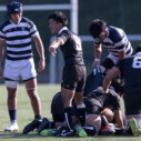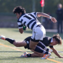 後半は、開始直後から関大らしいBKの速い展開から13分にゴール前22mラックから⑨‐⑩‐⑧‐○22とつなぎ左に展開、最後は⑮FB和仁原がトライ、ゴールも決まって14対17と試合の行方は分からなくなった。その後、大体大がゴール前での再三のスクラムでプレッシャーをかけるが、関大も粘りの強いディフェンスで凌ぎ、反撃に出るものの実らず、ノーサイドとなった。