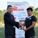 MOMは1年生ながら前半に二つのトライを挙げ、勝利に貢献した大阪体育大学⑧№8吉田海が選ばれた。