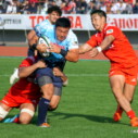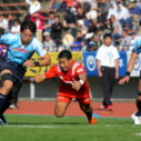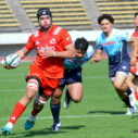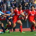 しかし前半28分神戸製鋼は、20mライン付近から相手の真ん中を割り、左中間へ10番カーターのトライ。ゴール成功47-12と先ほどの相手のトライを取り返す。