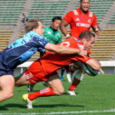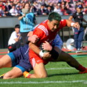 前半25分ヤマハ発動機ジュビロがゴールライン手前で相手の反則を誘い、ゴール前のラックからボールを左中間へ運び12番鹿尾のトライ。ゴール不成功40-12と反撃に入る。