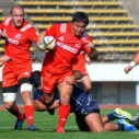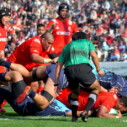 前半38分神戸製鋼。ヤマハ陣ゴール前ラインアウトから細かくボールを繋ぎ、ゴール前ラックから5番タウムアが中央へ押し込んでトライ。ゴール成功61-12