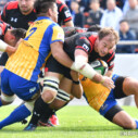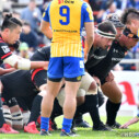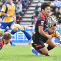 そして前半23分、Hondaはゴール前で執拗にラックを連取し、最後は⑧川崎が中央付近に押さえてトライ(ゴール成功)をあげ、7-12と点差を縮める。