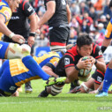 この後も緊迫したゲーム展開が続くが、この試合を決定づけるトライが生まれたのは後半34分。