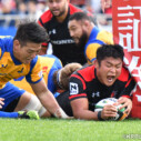 そこから執拗にラックを連取し、最後は③レイルアが中央に押さえてトライ(ゴール成功)をあげ、12-19のNTTリードで前半終了。