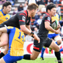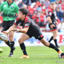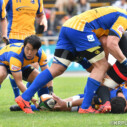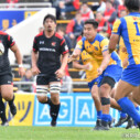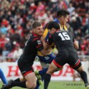 対するNTTは後半14分、自陣10m付近のラックでターンオーバーに成功、このボールを展開し、最後は⑥ロバートがトライ(ゴール成功)をあげ、24-26、再び逆転する。