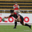 勢いに乗るHondaは、後半7分にキックのカウンター攻撃から⑪尾又がトライをあげ、24-19とし、この試合初めてリードする。