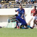 対するシャトルズは前半15分、中盤からBKに展開、⑭松井が前進するとFWの縦への連続攻撃、最後は⑥ピーターが抜け出し中央にトライコンバージョンも成功し、7―5と逆転する。