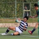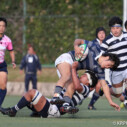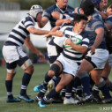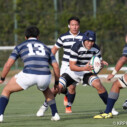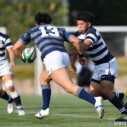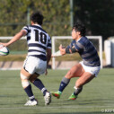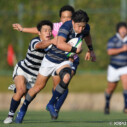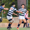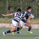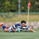 後半7分、同志社はゴール前5m左中間ラックから関大の甘くなったディフェンスを突いてNo8、8番嶋崎晴也が左隅にトライしてついに逆転に成功(19-24)。関大もこのままずるずる引き下がるわけにはいかない。「1勝」を胸に攻める。11分、自陣10m中央、相手ボールスクラムをプッシュしターンオーバー。SH21番が鋭い動きで独走しトライを返した(26-24)。しかしその後は同志社が19分、CTB12番永富晨太郎、29分、フッカー2番平川隼也がトライを上げ38-26。勝負は決したかに思えた。38分、関大は中央付近の相手陣で同志社のこぼれ球に鋭く反応した21番木下皓太が23番花田康輔につなぎが中央にトライしたもののとき既に遅く、38-33でノーサイドとなった。
