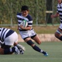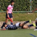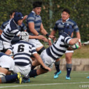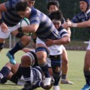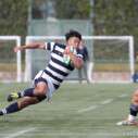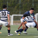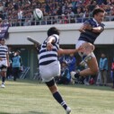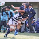 関大は5分、ラックサイドの攻撃でPR1番豊崎悠貴がトライ。更に7分、相手キックのチャージからCTB12番津田剛希がトライと連続して得点を挙げた。これ以上はない滑り出し。同志社は21分、ゴール前10mラックから右に展開、4人がつなぎWTB10番高野蓮がトライ。同志社の反撃開始かと思われたが関大も30分、相手ゴール前10mラックからの攻撃でロック4番南陽高が押さえる。ロスタイムの41分は同志社がゴール直前ラックからWTB14番高野がこの日2本目のトライを奪い19-17となり勝敗の行方は全く分からなくなって前半が終了した。