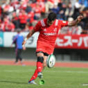 前半11分、神戸製鋼が敵陣5メートルでのラインアウトからモールを形成して攻め込む。サニックスはたまらずオフサイドの反則。ここから神戸製鋼CTB13バックマンが右に大きく展開、待ち構えていたWTB14アーウォンがT。SO10ニコラスのGも成功して7-0と先制する。