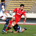 続く前半26分サニックスのキックをFB15清水がカウンター、中盤で数人つなぎ最後はWTB11山下が中央付近にT。G成功、21-0。