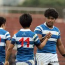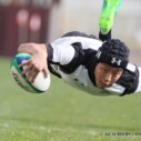 さらに前半7分、朝日大学は中盤のスクラムから⑬ティモが脱け出し前進、最後は⑭村上が右隅に飛び込みトライ、コンバーションも成功し14-0とリードを広げる。