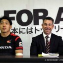 前半19分、ホンダはラインアウトから連続攻撃、左に展開すると主将⑦小林が左隅にトライ19-7と引き離す。