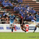 対するサニックスは、直後の前半31分防御のスペースを突き前進、最後は右に展開、⑬森林が走りきり右中間にトライ、コンバージョンも成功し24-14と追い上げる。