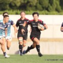 対するサニックスは直後の前半9分、中盤から一気に前進し左に展開、⑪屋宜ベンジャミンレイに渡り左隅にトライ、コンバージョンも成功し7-7と振り出しに戻す。