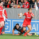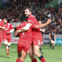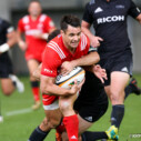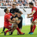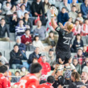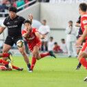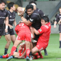 63分、67分と立て続けにスコアする神戸製鋼が53-15と試合を決定づけるも、諦めないリコーは70分、⑮ヘガティが華麗なステップで相手をかわしゴール前へ。ゴール前5Mでのスクラムからモールで押し込み⑯芳野がトライし53-20、75分にも、ラインアウトから素早く攻め、最後はゴール前で粘り⑲ロトアヘアポヒヴァ大和がトライ。キックも決め53-27と追い上げるが、39分神戸PGを㉒ニコラスが決め56-27。