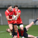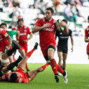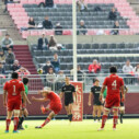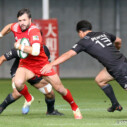 44分、ホーンが鳴り前半ラストプレー。加点して前半を終えたいリコーは、ゴール5M手前のモールからボールを出し左サイドへ回す。タックルで外に押し出されそうとなるも、左サイドギリギリに⑮ヘガティが飛び込んでトライ。キックも決め29-15で前半を折り返す。