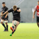 直後の58分、左サイドへ大きくパスを回した神戸製鋼は、⑫アシュリークーパーが真ん中をビッグゲイン、フォローに入った⑩カーターへパスをつなぎ、最後は⑭アンダーソンがトライ。キックも成功39-15。