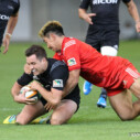 23分、神戸製鋼ボールをターンオーバーしたリコーは、素早く展開するも、神戸製鋼⑩カーターが巧みに腕を絡ませるタックルで相手のミスを誘い、ターンオーバー。そのまま⑩カーター、⑭アンダーソンとつなぎ、最後は⑨日和佐がタックルを巧くかわし、粘ってトライ。⑩カーターがキックを決め17-8と突き放す。