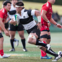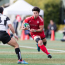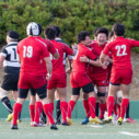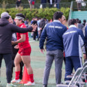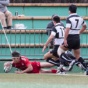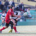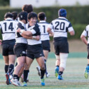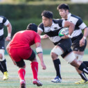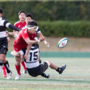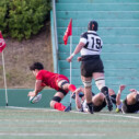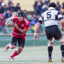 しかし33分、大体大中高10mL付近のラックから右展開、No.8 8番岡田が個人技で3人をかわし右すみにトライし、一矢を報いた。(22番西村友利G失敗)29-10 しかし時すでに遅く、余裕を持ってのびのびと自分たちのラグビーを発揮し始めた大体大は、終了間際の39分、左LO4番山本剣士、ロスタイム40分左FL6番助田凌雅が立て続けにトライ(G失敗)、39-10と最後は差を広げて試合を終了した。