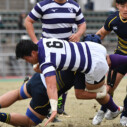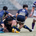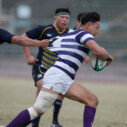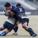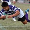 ところが小雨が降り出した後半に入ると立命大は「人が変わった」ように本来のテンポのいい攻撃が蘇る。キックオフのボールを明治がノックオンを犯すと、立命大は勢いを取り戻し、相手陣内深く攻め込み、ゴール前15m中央ラックから右展開。最後は15番FB山本貫太が右端にトライを返す。11分に明治スクラムのコラプシングの反則からの速攻で2番フッカー山口達也が、22分にも20番宮下大輝がトライを奪い19-36と詰め寄るが反撃もここまで。