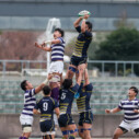 明治大はキックオフからバックスが積極的にアタックを仕掛け前進すると、立命大はたまらず反則を犯す。6分、明治は10番SO松尾将太郎が確実にPGを決め幸先良く先制。その後も、立命大のラインアウトやブレイクダウンでのターンオーバー、シン・ビン、インターセプト、キックミスに加えデフェンスの甘さを突いた攻撃がさえる。12、20、27、31、40分と5トライ36点と大量リードで前半を終えた。立命大はミスで自らのペースをつかめないまま前半を終えた。