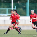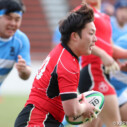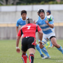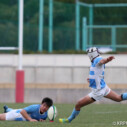 名古屋学院大学の⑨牧山からのロングパスを受けた⑭征矢野がトライ、5点を返し、7−5とする。
