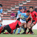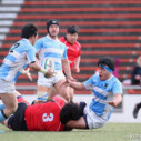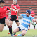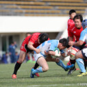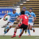 これに対して、名古屋学院大学は、後半7分、⑮鈴木が左隅にトライし、15−17と逆転。その10分後、後半17分、東京学芸大学の㉓山中がトライし、20−17と逆転し、シーソーゲームが続く。