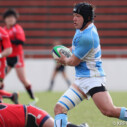 さらに、後半35分、名古屋学院大学は、自陣22m内側でのターンオーバーから左に展開、⑨牧山が抜け出し、⑮鈴木へパス、中央にトライ(ゴール成功)、25−29と逆転する。