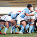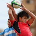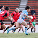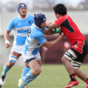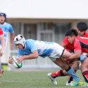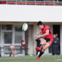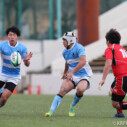 その後は、名古屋学院大学が、相手陣で試合を優位に進めるも、東京学芸大学の固いディフェンスに得点出来ずに前半終了かと思われた前半39分、名古屋学院大学は、ドライビングモールから②吉田が右中間にトライ。⑨牧山のゴールキックも成功し、10−12と逆転する。