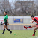 トライした⑫高橋がゴールキックも決め、東京学芸大学が先制し、7−0。