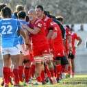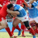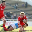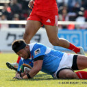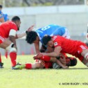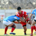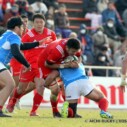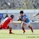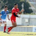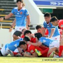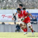 後半37分、相手ゴール前での攻撃を執拗に繰り返し、最後は⑱深村が勝負を決定づけるトライ(ゴール成功)で、再逆転。