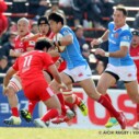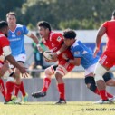 前半30分、FW・BK一体となった攻撃から、最後は⑨アンドリューがトライ(ゴール成功)し、14−7、この試合初のリードをする。