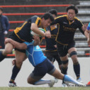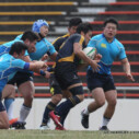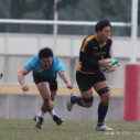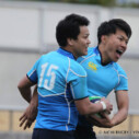 後半35分、愛知教員⑪塚本のゲインをきっかけに連続攻撃を仕掛け左右に展開、再度⑪塚本が持ち込みトライ、53−12とするが、反撃はここまで。