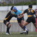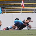 愛知教員⑩山下の突き刺さるようなタックルで攻撃を寸断するも、なかなかマイボールにできず、後半17分タマリバクラブ①石川がトライ、48−7となる。