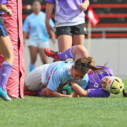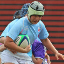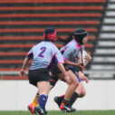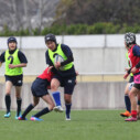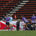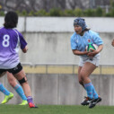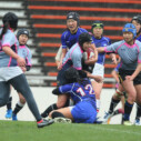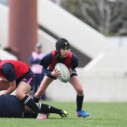 後半も攻撃の手を緩めない東軍は、後半10分、㉒大塚が左サイドへトライ、前半14分には、⑦高崎が左隅にトライを決め、0-66と点差をさらに拡げる。