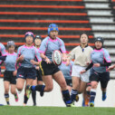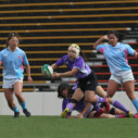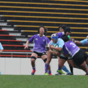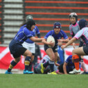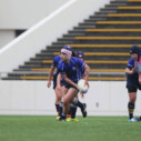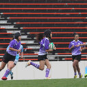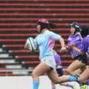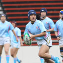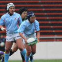 さらに東軍は、キックオフ再開後、右サイドをオフロードパスで、縦につなぎ相手陣へ、そこから、大きく左へ展開、3本連続となるトライを⑪平野が決め、前半11分、0-17と点差を拡げる。