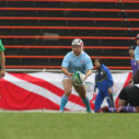 西軍はそこからアタックを試みフェイズを重ねたのち、自陣ゴール前からタッチラインを狙ったキックを東軍④小西が左サイド22m外側でキャッチ、縦に突破を図り左隅トライ、前半16分、0-22と、さらにリードを拡げる。