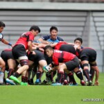 ラインアウトからモールを組みたいところであったがボール獲得はならず後退する。