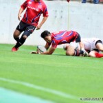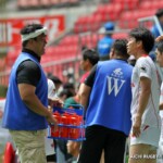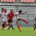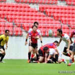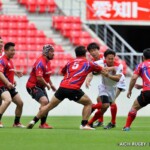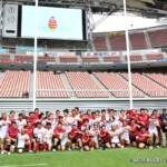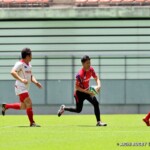 愛知・豊田ラグビーフェスタの第1日目第2試合は、第3試合、トヨタ自動車ヴェルブリッツ対日野レッドドルフィンズに先立ち、梅雨入りした曇り空の中、時折日差しもさす天候のもと、トヨタ自動車OBと日野自動車OBのフレンドリーマッチが20分ハーフで行われた。