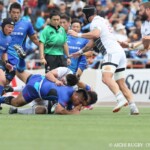 FWが攻撃を重ね、最後は⑫ロトアヘアが中央にトライ、コンバージョンも成功し7-12とする。