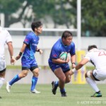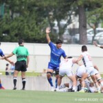 前半16分、相手ラインアウトをスチールすると⑫ヴァカがバックス防御の隙をつき大きく前進、FWが攻撃を重ね最後は①渡邊彪が右中間にねじ込みトライ、コンバージョンも成功し7-5と逆転する。