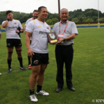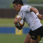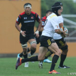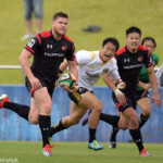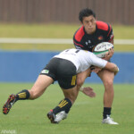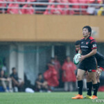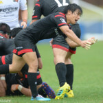 ここからもサントリーは勢いのある攻撃をしていくが、Hondaも粘り強いDFで簡単には好機を作らせない。すると32分、Hondaが敵陣中央でペナルティを獲得し、⑩朴成基が落ち着いて決め3-12とする。