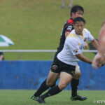 何とか反撃に出たいHondaだが連続してラインアウトが安定せず苦戦を強いられる。すると14分、サントリーはスクラムから⑭中鶴隆彰がDFを突破。最後はサポートに走った⑮尾崎晟也がトライ。0-12とリードを広げる。