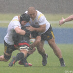 前半も終盤に差し掛かり雨脚が強まる中、ノータイムを告げるホーンと同時にゴールに飛び込んだのはサントリーだった。サントリーは連続攻撃から⑩マットギタウがラックからのボールを受けDFを突破し中央にトライ。3-19とサントリーがリードを広げ前半を終了した。