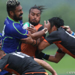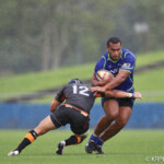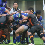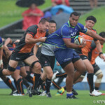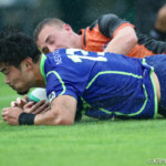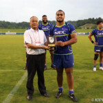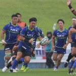 一方NECは接点でプレッシャーをかけ続け、後半25分スクラムを押し込みペナルティーを獲得。ゲームの流れを完全に支配したNECがゴール前のスクラムからFWのサイド攻撃。最後に5番サナイラ・ワクァが押し込みトライ。
