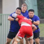 今日は神戸製鋼さんのFWのアタックに対して前でプレッシャーをかけようと臨みましたが、想定以上の強いFWに突破を許してしまい、DFが機能しないという結果になってしまいました。ただ、練習を重ねてきたスクラムと、プッシュアップして外で詰めて仕留めるDFについては、神戸製鋼さんにも通用する部分があり収穫でした。今日の結果を次の試合、そして秋のリーグ戦に向けて、ポジティブな材料として取り込んで成長したいと思います。