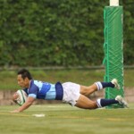 後半に入ると同志社のディフェンスが少しずつ甘くなり、反面、摂南は相手ディフェンスのスキをうまく付いて2、15、19分とトライを返した(35-42)。前半は一時28点差が付き、一方的な展開かと思われた試合は行方が分からなくなった。